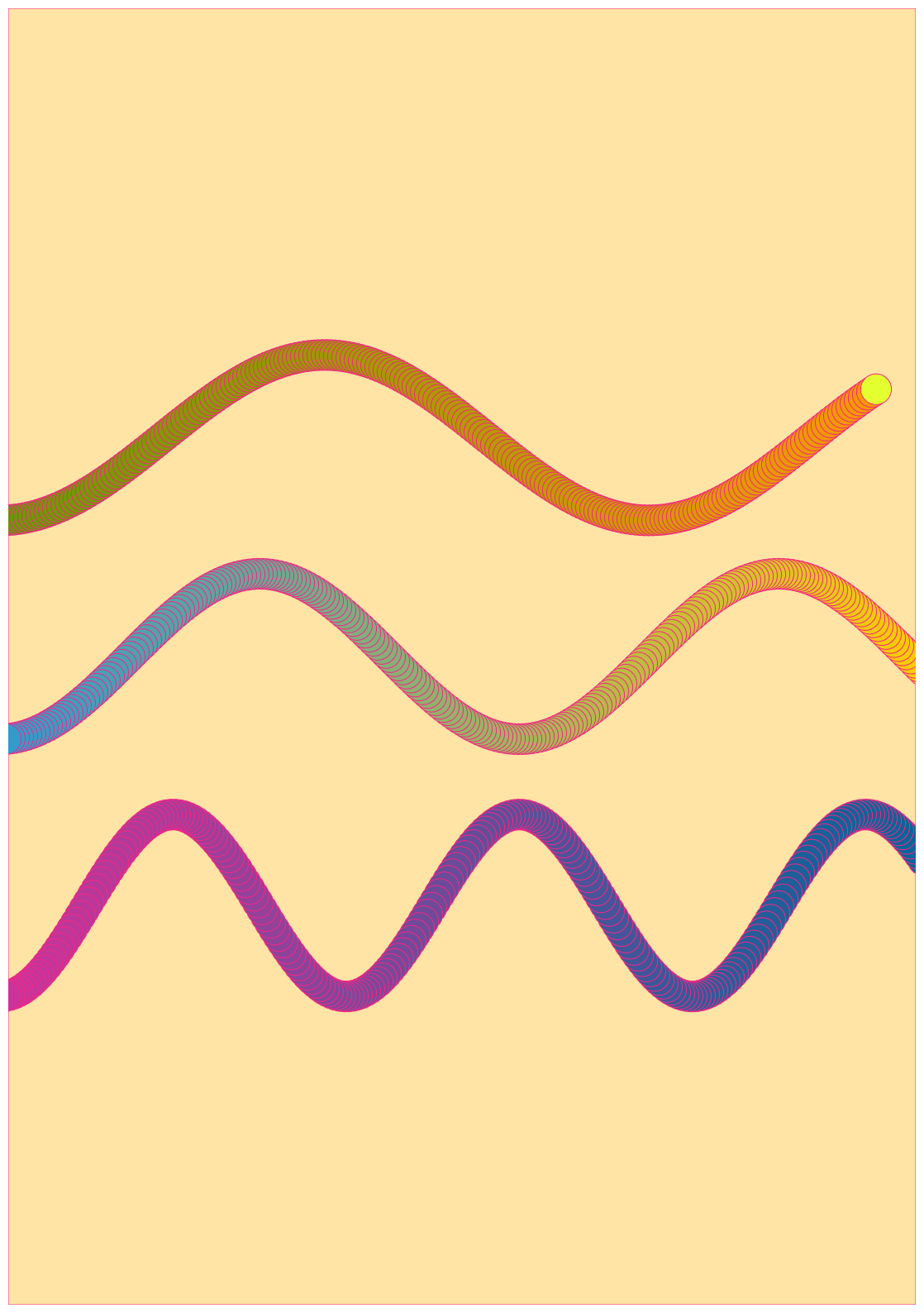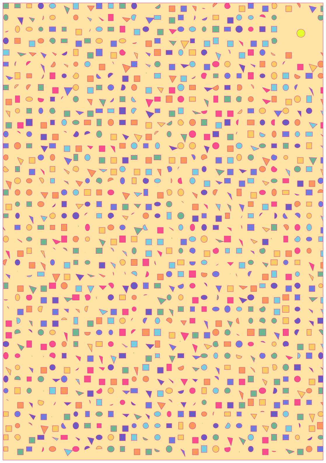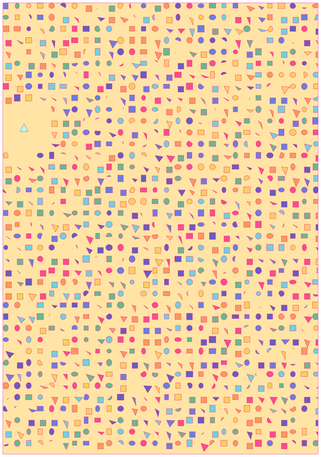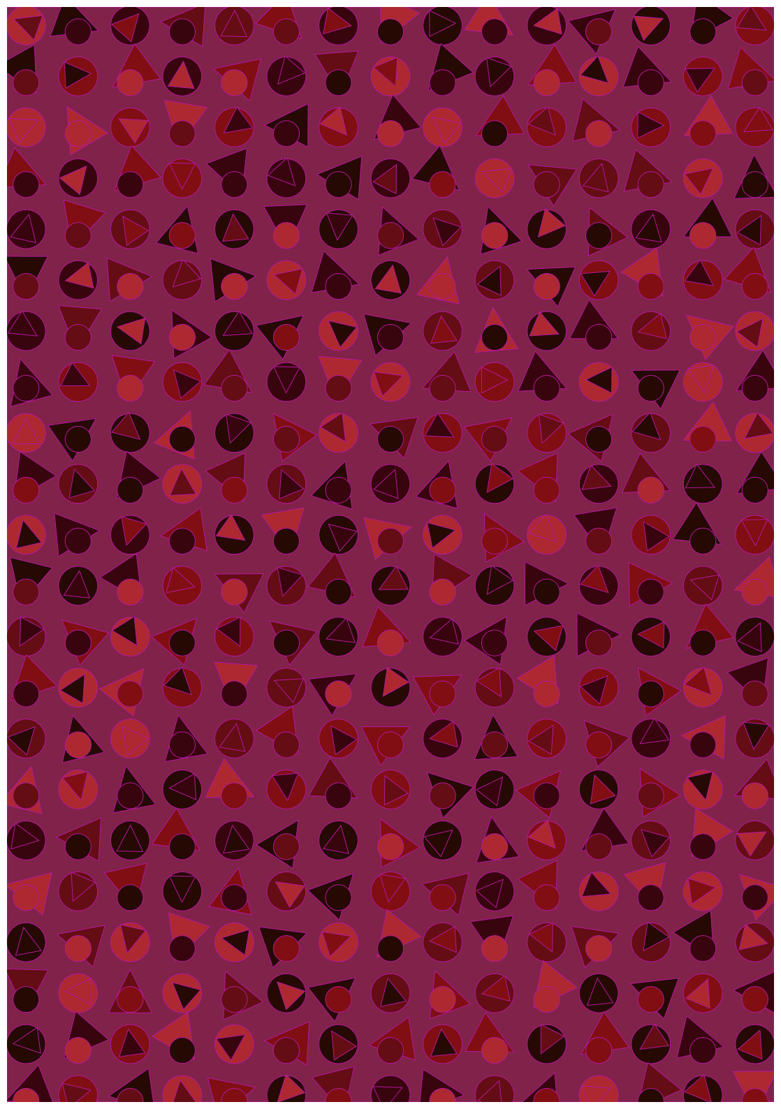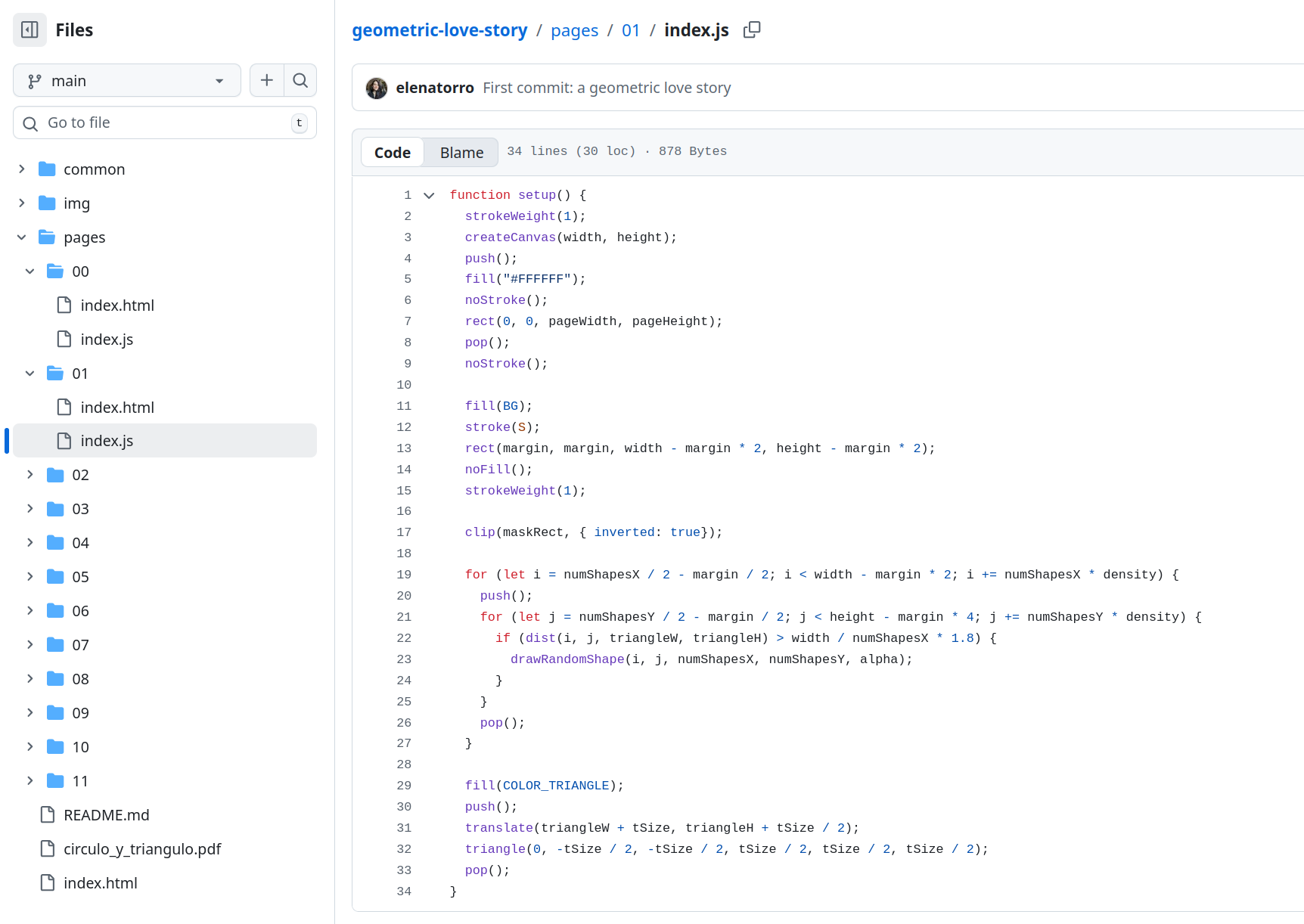 El código, por supuesto, es guarrísimo. Y he decidido (al menos por el momento) no refactorizarlo. Quiero, a propósito, que esté un poco desordenado, que haya líneas totalmente innecesarias, que haya código repetido, documentado. Es la traza de ese proceso de prueba y error, de intentar mil y una combinaciones, de probar distintas paletas de colores, de jugar con los tamaños, de querer adaptarlo a la idea inicial pero también dejarme llevar según iba evolucionando en mi cabeza y sobre el canvas. Y, por supuesto, como obra con propósito artístico, está escrita a mano y a conciencia, no utiliza IA generativa. No tendría ningún sentido, ni diversión, ni gracia haberlo hecho.